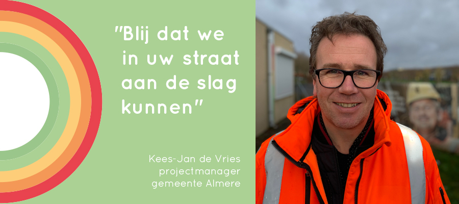 Na het maken van de plannen starten we buiten met de werkzaamheden. Wat dit betekent voor u als bewoner? Adri Weijmer van gemeente Almere en Luuk Spijkerman van Dusseldorp vertellen het u in de onderstaande video.